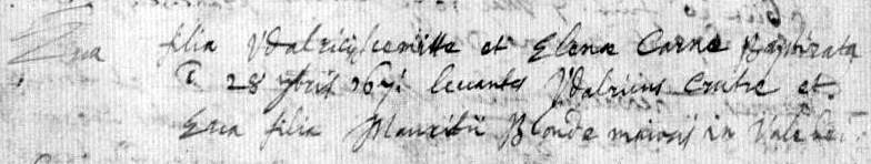 Le 8 février 1665, Ulrich et Elena ont une première fille Elisabeth, baptisée sous le patronyme de MARECHAUL. Le rédacteur de l’acte a tout simplement traduit SCHMIED (qui signifie forgeron) en un équivalent français approximatif. Le patronyme de l’épouse est transcrit phonétiquement (QUERNE).