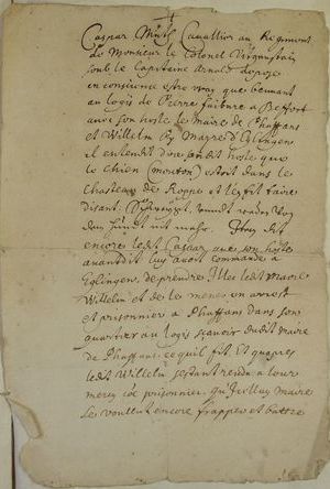Tel ce cavalier Caspar MUTH, d'un régiment allemand de l'armée suédoise, qui est logé chez le maire de Phaffans.