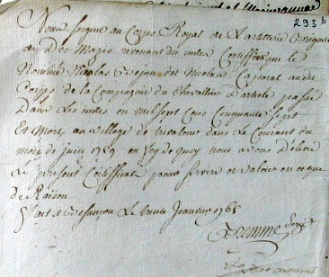 mois de juin 1759 en foy de quoy nous avons Délivré