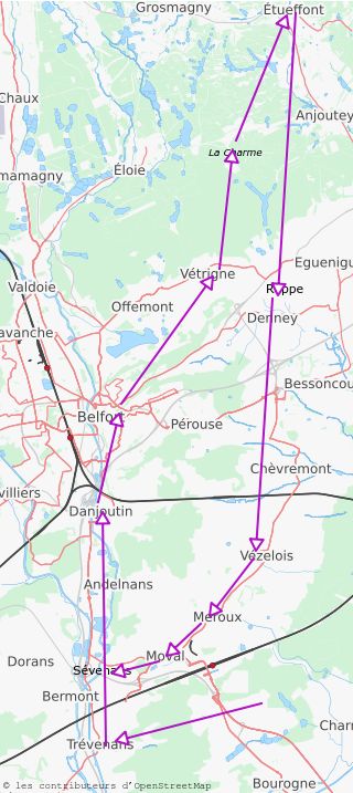 On aura reconnu les communes ou lieux-dits de Bourogne, Meroux, Trétudans, Danjoutin, Belfort, Roppe, Vétrigne, La Charme (com. d'Anjoutey), Etueffont, Vézelois, Moval et Sévenans ou le loup est mis à mort.
