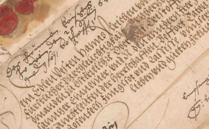 (L'image de la page d'accueil est tirée de l'exemplaire expédié le 29/08/1564 par la Régence au grand bailli de Belfort Hans Ulrich Von Stadion, par laquelle elle l'informe officiellement, ainsi que le receveur Christophe Besançon et les autres sujets des seigneuries de Belfort, Delle, Rougemont, Angeot et l'Assise, de la mort de l'empereur Ferdinand I - décédé le 25/07/1564 - et du fait que l'archiduc Ferdinand du Tyrol est le plus proche héritier)