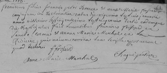 Nous trouvons ainsi, dans l'exemple de la paroisse de St-Germain-le-Châtelet, la série 1E91\bms (1773-1778, 1788, 1791-1792) qui fait apparaître d'une part la 1ère période des doubles 1773-1778, avec des apographes :