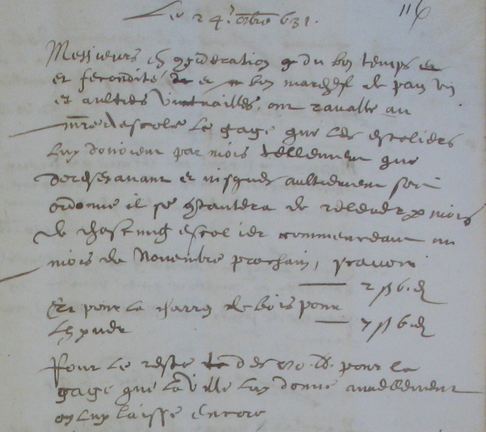 Messieurs en consideration du bon temps Et pour la charroz de bois pour Pour le reste des 80 £ pour le |