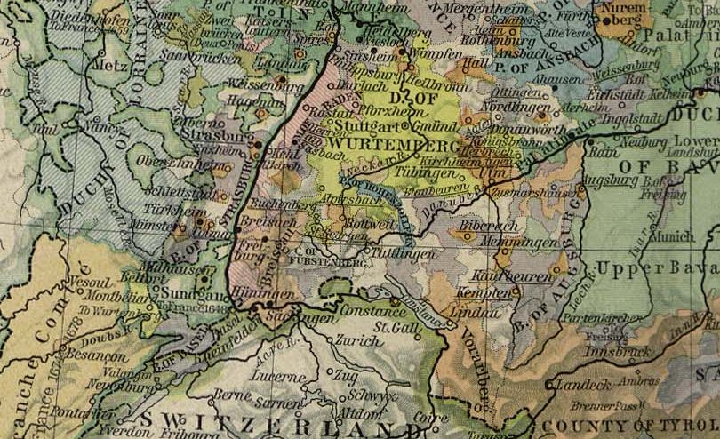 la frontière entre la Germanie (Alamanie puis Souabe) et la
