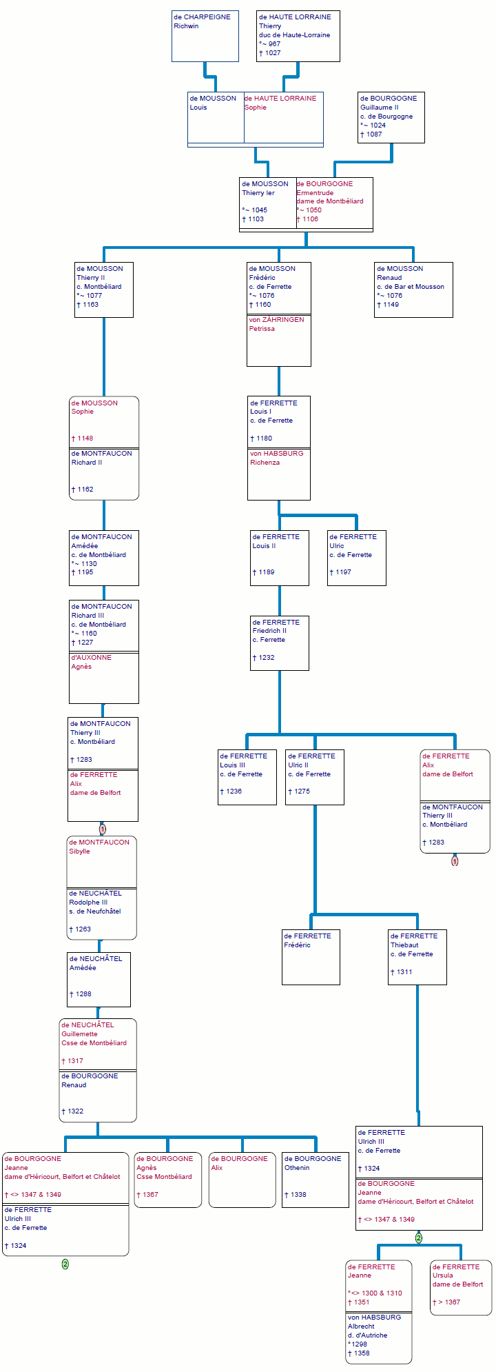 On voit donc que les comtes de Montbéliard et de Ferrette sont issues (au moins par les femmes) de la plus haute aristocratie de Lorraine et de Bourgogne.