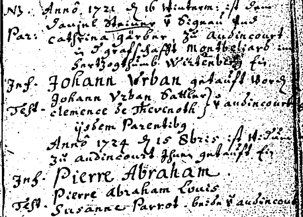 Ils ont en fait au moins 2 fils en plus de Hans et Daniel : Johann Urban donc, et Pierre Abraham. La naissance à Audincourt de chacun, hormis celle de Hans, est attestée par les archives paroissiales de Signau (celles d'Audincourt ne sont pas consultables en ligne).