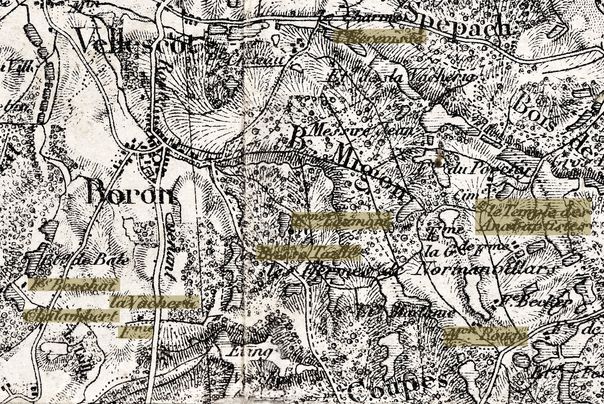 Sur le plan napoléonien figurent encore pour ce secteur une ferme non nommée, la ferme Belrichard, sur Grandvillars, et une autre, sur Boron (la vacherie ?)