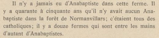 Ce texte est probablement significatif du ressenti, et des ressentiments, des non-anabaptistes vis-à-vis de cette communauté, avant la Révolution.