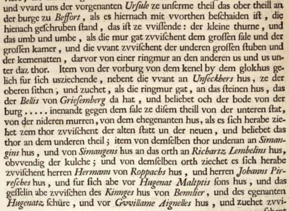 Waites, herr Friderich von Chastaillon, hu herr’in erben von Champels, die tochter von Flagey, des von Bellewilre leben, Ludowig von Cuvé, herr Gerhart