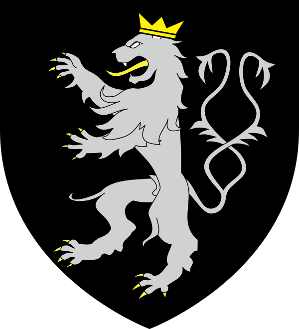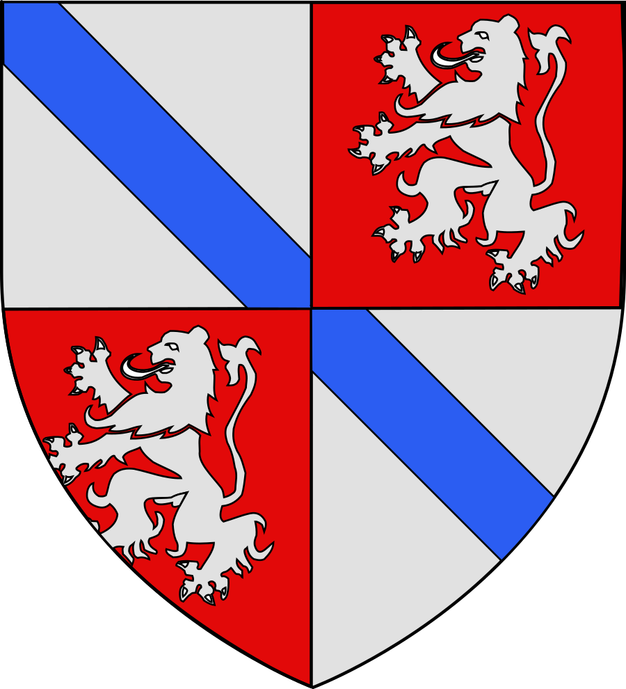 Le blason des Bournonville (à droite) est "de sable à un lion d'argent à la queue fourchée et passée en sautoir, couronné et armé". La couleur "sable" (noir) est figurée par le "code graphique" héraldique du quadrillage.