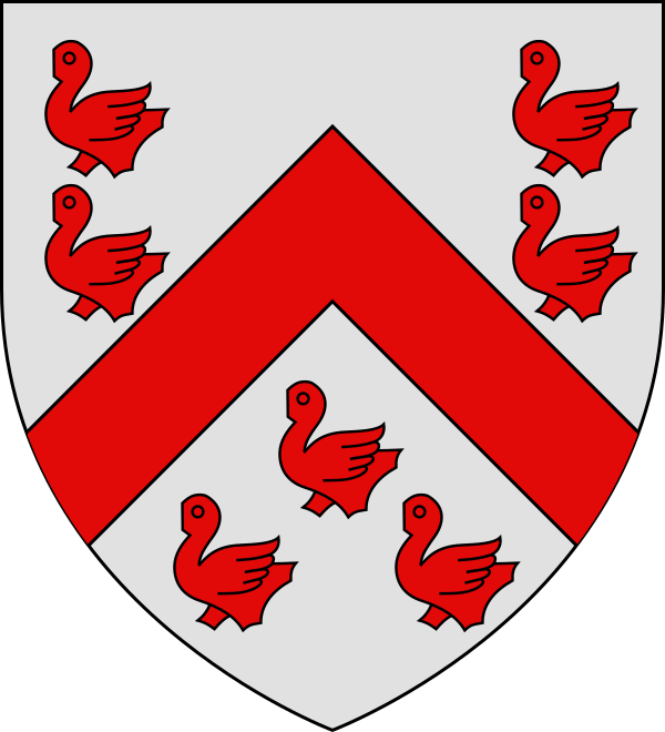 Sur l'écu des d'Aumont, à gauche, les oisillons ne sont pas des canetons, mais des merlettes ; le blason est "argent au chevron de gueules accompagné de sept merlettes du même, quatre en chef, trois en pointe mal ordonnées". Avec évidemment les ornements ducaux.