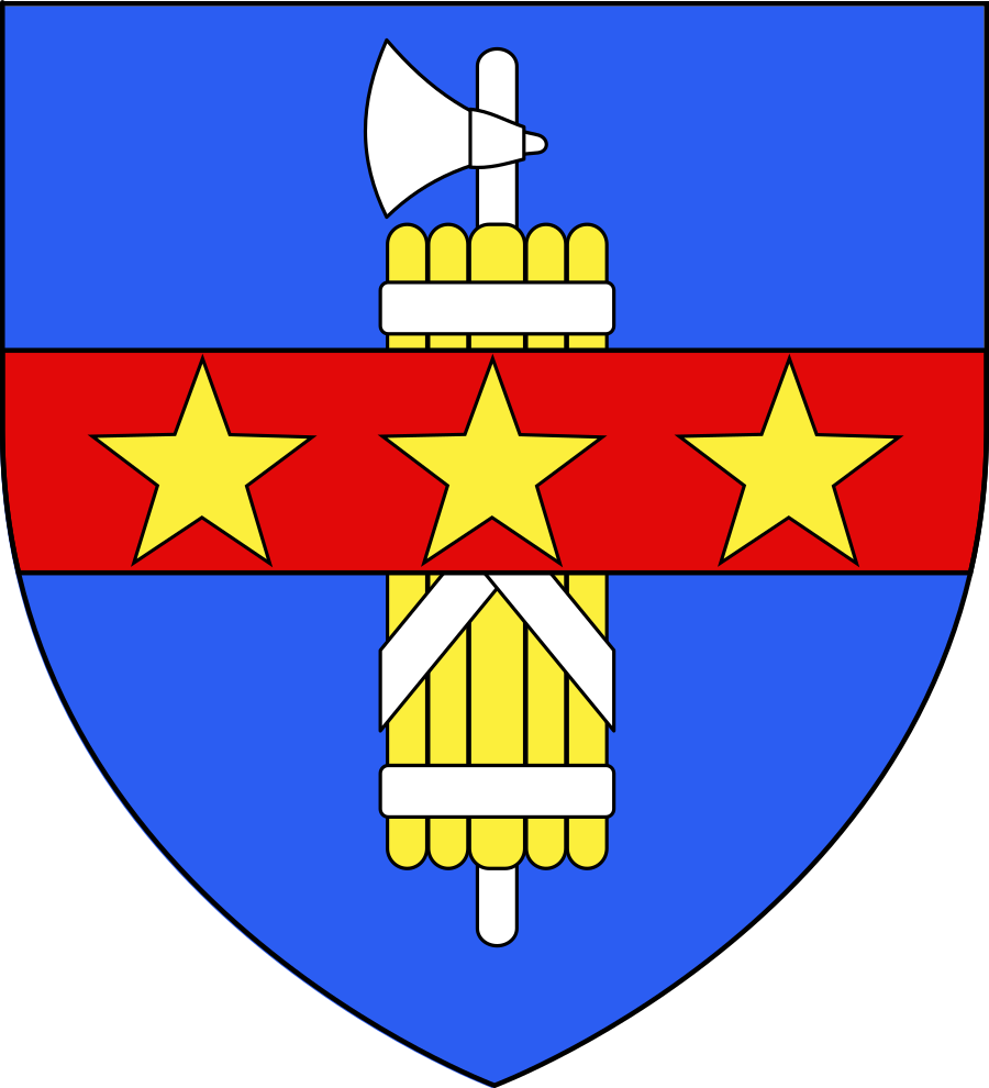 Le blason des Mazarin est "d'azur au faisceau de licteur d'or lié d'argent, la hache du même, à la fasce de gueules brochant sur le tout chargée de trois étoiles d'or" (1).