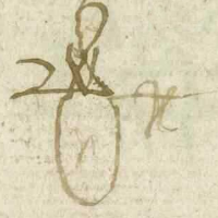 De Villèle a déterminé que Tabellion avait été clerc ou tabellion de la ville de 1429 à 1475. Il signe 6 actes de son élégant paraphe :