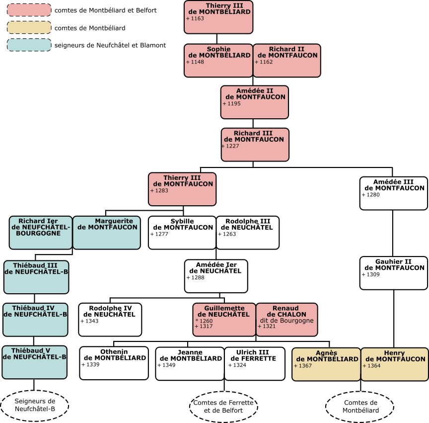Renaud de Chalon, dit de Bourgogne, hérite parallèlement du comté de Montbéliard par son mariage avec Guillemette, petite-nièce de Marguerite de Moutfaucon.
