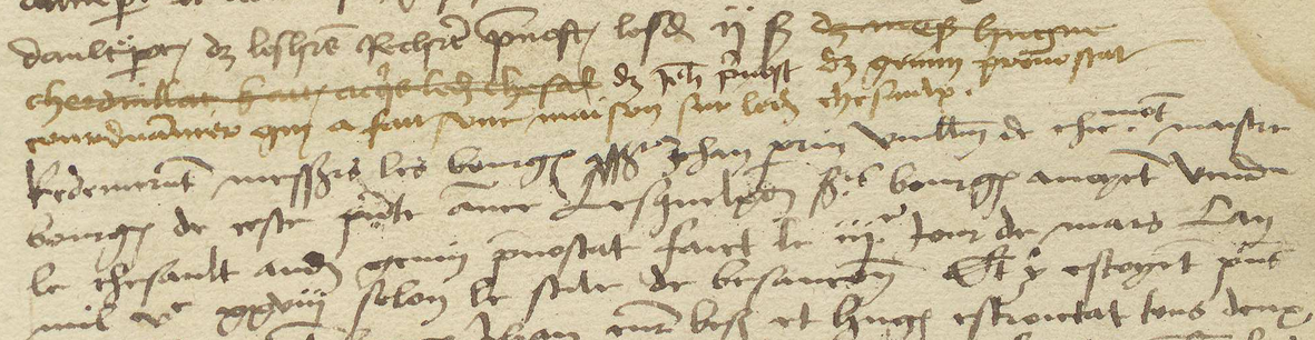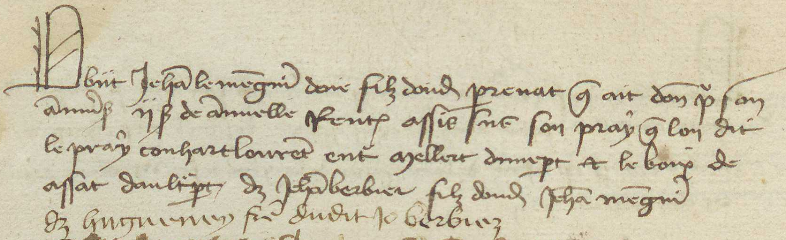 Dans le suivant, c'est messire Jehan Henry frere doudit Vuillaume Marcoulz. Ici, Marcoulz apparaît d'avantage comme un proto-patronyme (le clerc a sans doute recopié à l'identique le contenu des écrits dont il disposait).