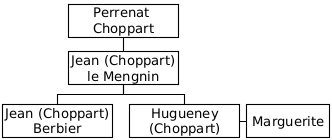 Mais "Choppart" est un patronyme présent jusqu'à nos jours dans la région ; il n'a peut-être pas été hérité dans cette lignée, mais, conservant la démarche présentée plus haut, nous l'avons néanmoins attribué aux 3 descendants.