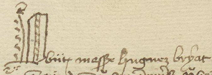 Hugues Bryat ; fils de Jean Bryat et de Jeanne ; personnage important à Belfort dans les années 1420-1450 ; d'abord chapelain et receveur de Catherine de Bourgogne, il reste conseiller des ducs Habsbourg, jouant souvent un rôle diplomatique entre les archiducs et diverses parties, dont le roi de France, et agissant au bénéfice de la ville et du chapitre (8) ; possesseur d'un grand nombre de pièces de terre ; a un fils illégitime, Jean De La Motte ; ce n'est sans doute pas par hasard si a lettrine "O" de son obit est l'une des plus ornementée :- Pierre de Foussemagne ; fils d'Henry de Foussemagne et de Jeannette, fille d'Huguenin de Danjoutin ; a pour frère Henry de Foussemagne, bourgeois de Belfort et maître du commun en 1442 (mais, contrairement à ce qu'indique De Villèle, rien ne permet d'affirmer qu'il soit le frère d'Henry, curé de Foussemagne, cité en 1488 dans AMB CC2bis), et pour filles illégitimes Henryate et Hugate ; tient des comptes pour le chapitre de 1441 à 1458 ; possesseur d'un grand nombre de pièces de terre, et d'une maison au dessus de la halle,