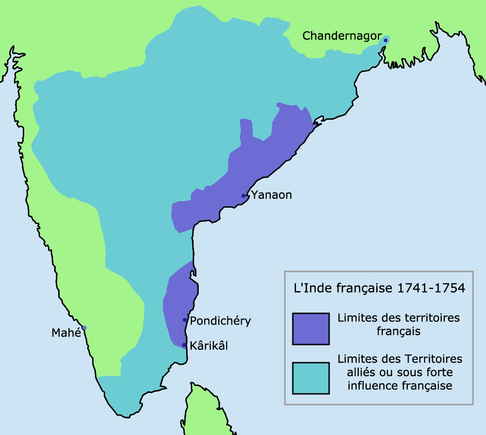Au milieu du siècle l'influence française, sous le gouverneur Dupleix, s'étend sur la majeure partie de la péninsule.
