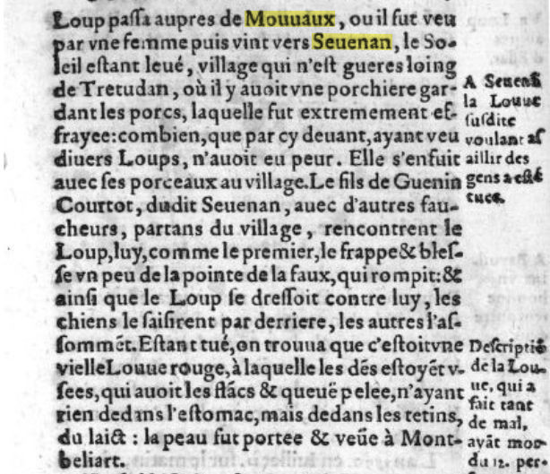 On aura reconnu les communes ou lieux-dits de Bourogne, Meroux, Trétudans, Danjoutin, Belfort, Roppe, Vétrigne, La Charme (com. d'Anjoutey), Etueffont, Vézelois, Moval et Sévenans ou le loup est mis à mort.