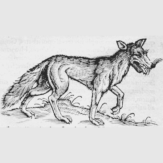 Voici des extraits de l'histoire de ce loup, dépeinte en 1591 par Jean Bauhin (originaire de Bâle) "Histoire notable de la rage des loups, avenue en 1590, avec les remèdes contre la rage causée par la morsure des bêtes enragées".Nous nous limitons au (funeste) périple de l'animal. Le lecteur intéressé pourra trouver intégralité du texte (avec les descriptions des blessures infligées et des soins dispensés, qui constituent la finalité de l'ouvrage) ici.