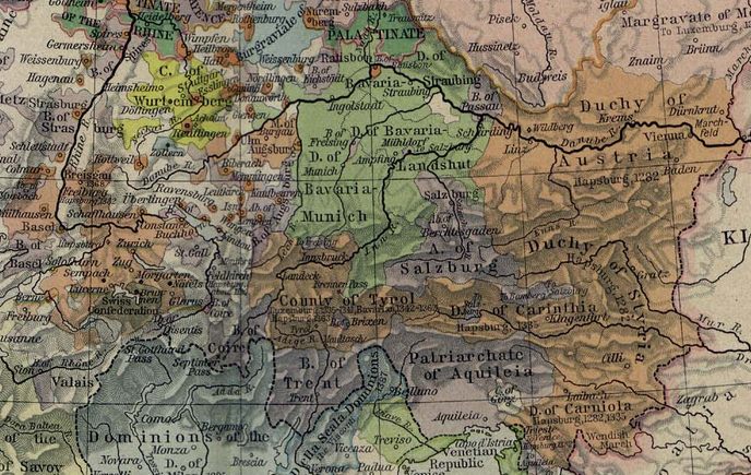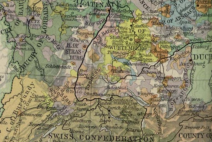 Noter également la principauté de Montbéliard, dépendante du duché de Würtemberg, l'évêché de Bâle qui restera autonome jusqu'à la Révolution et la ville de Mulhouse, alliée aux cantons suisses.