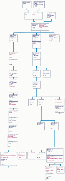 On voit donc que les comtes de Montbéliard et de Ferrette sont issues (au moins par les femmes) de la plus haute aristocratie de Lorraine et de Bourgogne.