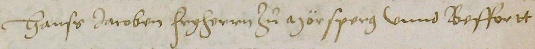 | Hanss Jacob(en) fryherr(n) zu Mörsperg und Beffort : nom du seigneur (ici extrait ici document AA2/11), tel qu'il pouvait apparaître dans l'original du document étudié |