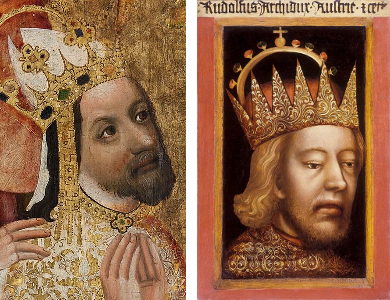 À très haut, très illustre et puissant prince et seigneur sire Charles, par la grâce de dieu Empereur des Romains, toujours auguste, roi de Bohème, notre très honoré et redouté prince et seigneur. Nous, Rodolphe, par la grâce de dieu duc d'Autriche, de Styrie, de Carinthie, seigneur de Carniole, de la Marche Windique, de Pordenone, comte de Habsbourg, de Ferrette, de Kibourg, marquis de Burgau et landgrave de Haute Alsace, adressons notre hommage en toute révérence et humilité, toute disponibilité et fidèle volonté. |