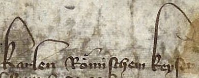 Charles IV, par la grâce divine empereur des Romains, toujours auguste, et roi de Bohême. Pour mémoire perpétuelle. Nous faisons savoir à tous, par la teneur des présentes, qu'illustre prince et seigneur Rodolphe, duc d'Autriche, de Styrie et Carinthie, notre très cher gendre (...) nous a présenté une lettre signée (...)