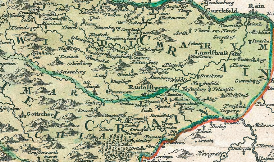 La ville principale de Basse-Carniole est Novo Mesto. Elle s'appelait anciennement Rüdolfswerth. Comme ce nom l'indique, elle fut fondée, bien loin de notre Territoire de Belfort, par Rodolphe en 1365.