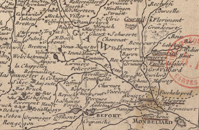 | Bailleul | 1708 | Sundgau, Brisgau | ca. 75% | Fr. (All.) | N - S + 15° | + | ca 1:195 000 | |
