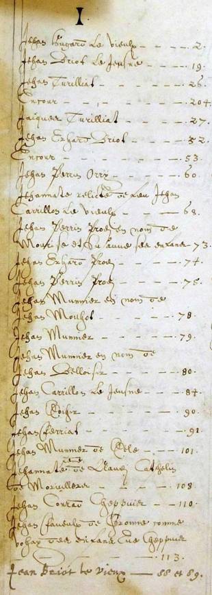 Les déclarations individuelles (ou par feu) sont précédées d'un bel index (par ordre alphabétique des prénoms) qu'il nous a semblé intéressant de présenter ici (tableau réalisé par Michel F. que nous remercions)