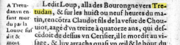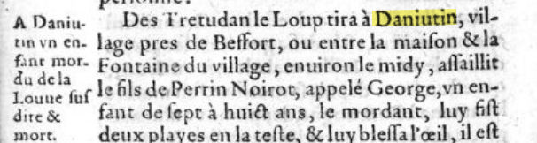 On aura reconnu les communes ou lieux-dits de Bourogne, Meroux, Trétudans, Danjoutin, Belfort, Roppe, Vétrigne, La Charme (com. d'Anjoutey), Etueffont, Vézelois, Moval et Sévenans ou le loup est mis à mort.