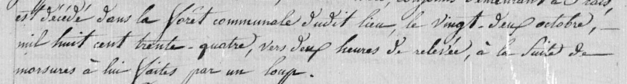 En octobre 1834, le loup est encore présent, et fait des victimes, comme le montre l'acte acte de décès à Frais de Pierre-Frédéric THIS, le 22/10/1834 :