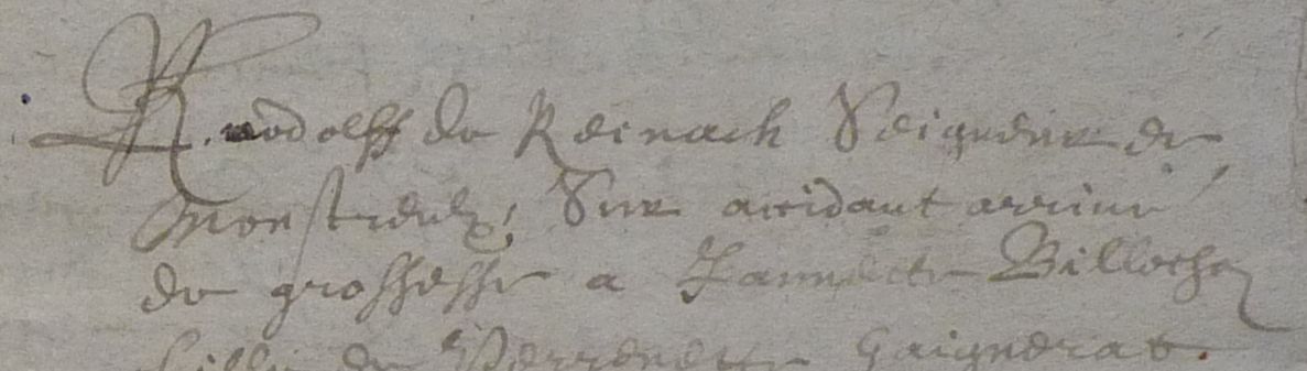Le 14 décembre 1656, apparaît dans le registre de justice de la seigneurie de Montreux une affaire singulière ; au point que les audiences se déroulent sous l'autorité du seigneur lui-même, nommément désigné : Ruedolff de Reinach.