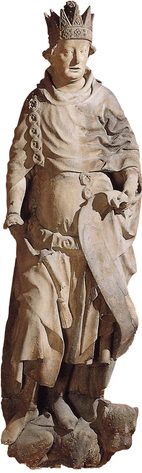 Statue d'Albert II au Stephansdom de Vienne. Albert a été une des grandes têtes politiques de la famille de Habsbourg (courtoisie de l'assocation "Auf den Spuren der Habsburger").