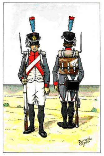 La tenue du régiment consistait en un habit-veste beige avec collet, passepoils et parements bleu de roi (3).