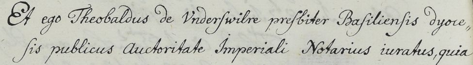 Le document se termine par le subscriptio en latin de la main dudit Thiebalt d'UnderswilerUndervelier (JU) :