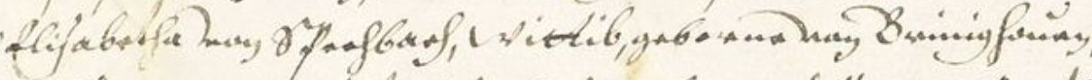 Le mercredi 24 septembre, environ un quart d’heure après onze heures du matin, au château de Brinighoffen, dans la chambre du fond donnant sur le village de Brinighoffen, devant moi, notaire public, et les témoins dignes de foi dûment appelés, s’est présentée en personne (avec l’assistance de l’honorable et érudit maître Claude Chulot, docteur en droit civil et canon, avocat et procureur assermenté auprès de la cour princière d’Ensisheim) la noble et vertueuse dame Élisabeth de Spechbach, veuve, née de Brinighoven, bien que malade, mais encore saine d’esprit, lucide, et en pleine possession de ses facultés mentales.