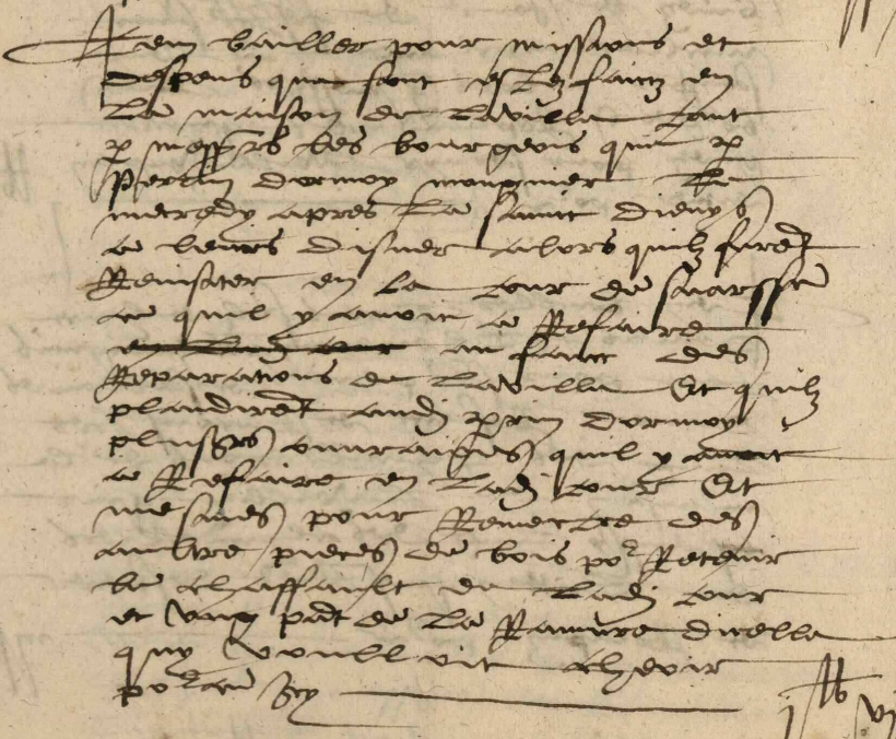 - la fin des dépenses, et la conclusion du compte manquent également. En plus du montant total des dépenses, elle pouvait porter les noms des principaux membres du conseil, qui resteront inconnus, en dehors de celui du maître bourgeois (Jean Pelletier) et du maître du commun (Henry Lhoste), cités à plusieurs reprises.
