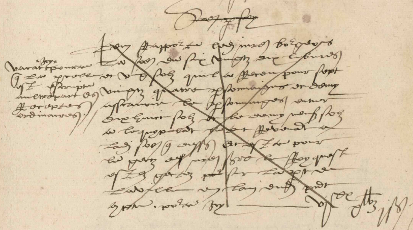 - la première page portait potentiellement la mention de l'année du compte. Nous avons pu compenser ce manque dans notre article Questions de datation ; maîtres bourgeois. La conclusion en est qu'il s'agit de l'année de compte 1553-1554, commençant à la saint Jean-Baptiste (24 juin) 1553, et finissant à la même date de l'année suivante (13).