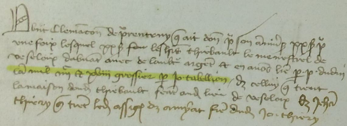 Ce document du 19 juillet 1483 (il s'agit ici d'une copie datant du XVIème siècle ; transcription complète ici) prouve que Jean TABELLION et son épouse étaient décédés en 1483, et peut-être (elle est dite "jadis sa femme", et non sa veuve) qu'il est mort avant elle.