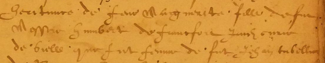 Plus loin, on trouve le nom de son épouse : Jehannete Verroille, de Besançon.