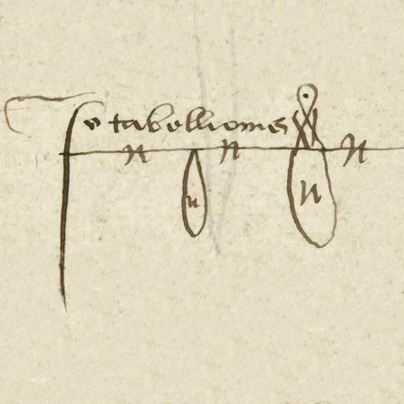 De Villèle a déterminé que Tabellion avait été clerc ou tabellion de la ville de 1429 à 1475. Il signe 6 actes de son élégant paraphe :