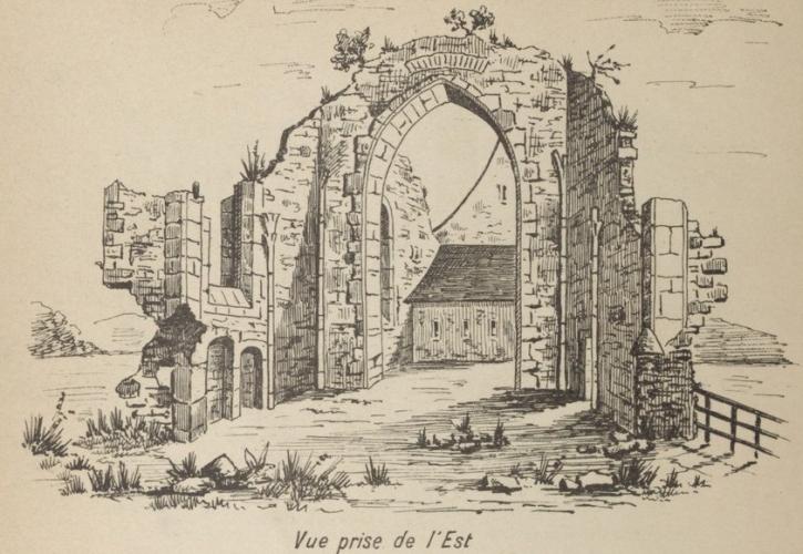 | Ruines du prieuré de Froideval, telles que H. Bardy les a représentées en 1846 ; dessin reproduit sur le bulletin de la SBE de 1894. |