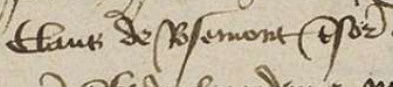 | 1 | Je Thiebault sires de Nuefchastel fais scavoir à tous que, come je hae trovey prins par l'informacion de bones genz que Mess(ire) Thiebauz mes peres, |