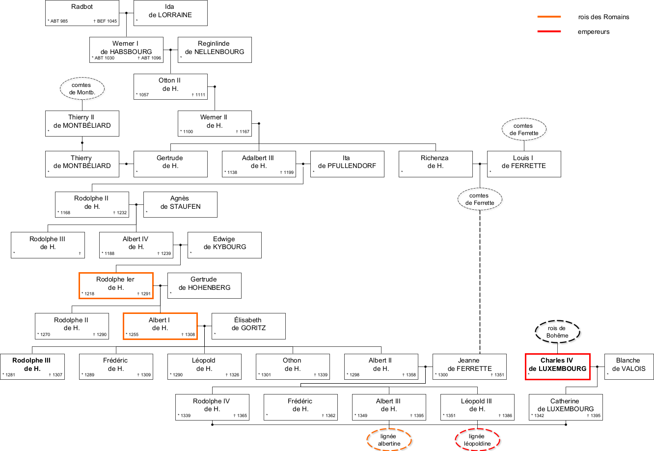 Voir ci dessous les commentaires sur ces protagonistes, et sur les premiers Habsbourg et leurs possessions, auxquelles renvoient les numéros ci-dessus.