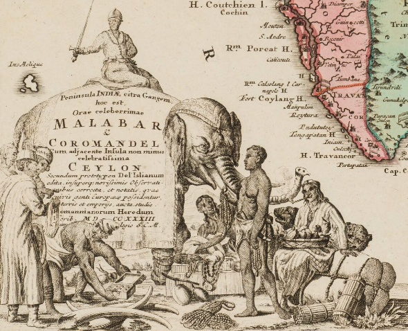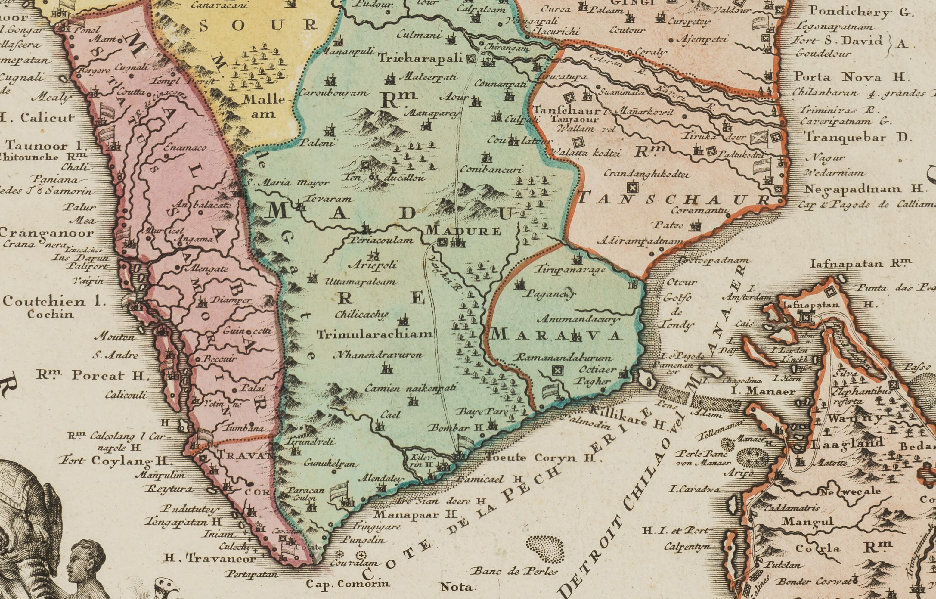 L'échelle est beaucoup plus petite, mais on retrouve Travancor, comme une localité, Coulan, Madure, Cochin, Tuticorin...