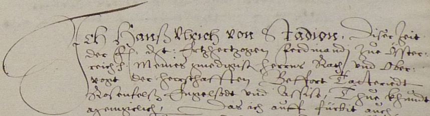 ![]() Moi Hanß Ulrich von Stadion, en ce temps, du ... ... archiduc Ferdinand d'Autriche |
