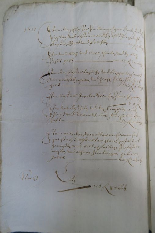 | Item umb 200 fensterscheiben zalt ............... | Item pour 200 carreaux de fenêtres, payé ......... | 1 f 3 kr |